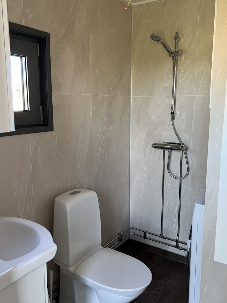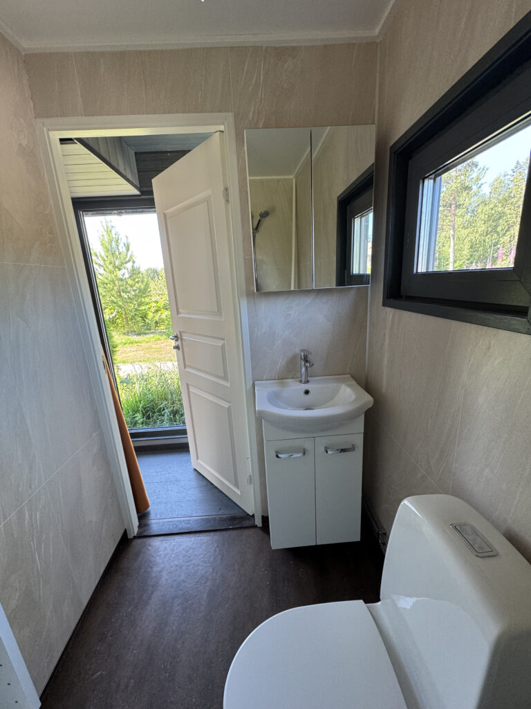 Although the houses are only 30 square meters, many people experience them as feeling larger. Customers often say it feels much more spacious than it looked online. We have spent time on smart solutions, and it shows, says Björn. The design is functional and cozy; it doesn’t cost extra but is included with the house.